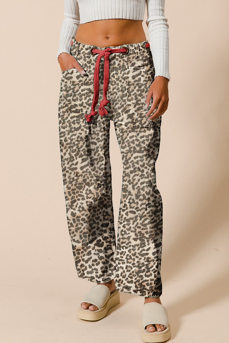 Rock the wild side with these Leopard Pants! Featuring a trendy animal print and a braided waist tie, these pants are sure to turn heads. Plus, with convenient patch pockets, you'll never have to sacrifice style for function. Time to unleash your inner fashionista!