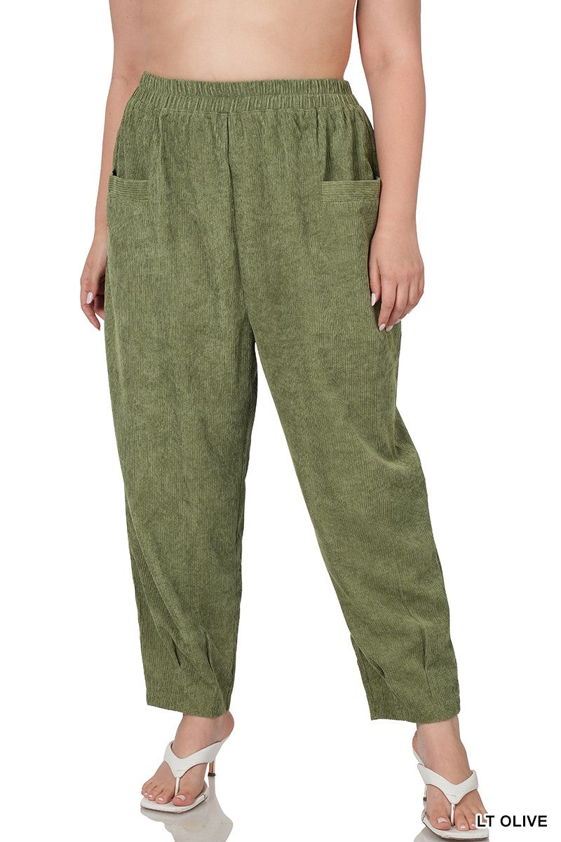 Get cozy and stylish with our Corduroy Front Pocket Pants! These pants are made from soft corduroy fabric and feature trendy front pocket details. With an elastic waist for ultimate comfort, these pants are perfect for everyday wear. Say goodbye to boring pants, and hello to playful style with our Corduroy Front Pocket Pants!