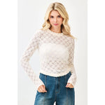 Show off your playful style with this cropped lace top featuring a delicate floral lace pattern and a flirty curved hem. Perfect for mixing and matching, it adds a touch of charm and whimsy to any outfit.