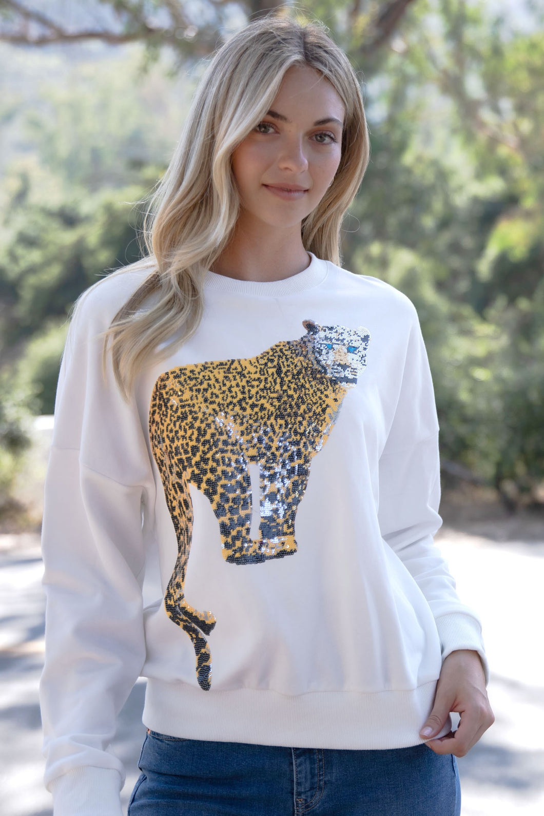 Add a wild touch to your casual look with this playful sweatshirt featuring a bold leopard design accented by sparkling sequin details. Soft and comfy, it’s perfect for turning heads while staying cozy all day long.