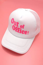 "Out of Office" Trucker Hat Cap, a trendy fusion of relaxation and style. This hat combines the classic trucker design with a playful "Out of Office" motif, making it the perfect accessory for those moments when you're in chill mode. Designed for comfort and laid-back vibes, the "Out of Office" Trucker Hat Cap is versatile for various occasions.