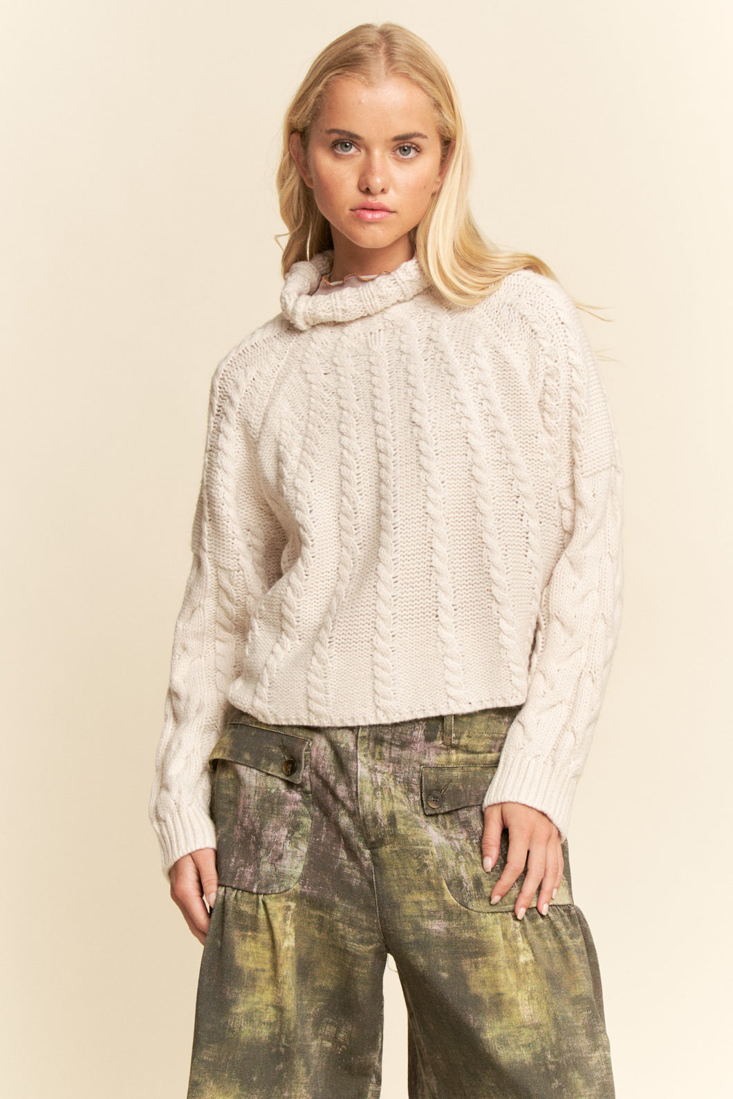 Elevated knitwear for boutique collections, this cropped cable knit mock neck sweater brings refined texture with a relaxed yet polished silhouette. Designed for versatile styling, it pairs effortlessly with tailored or casual bottoms, offering cozy sophistication that appeals to buyers seeking timeless updates with wearable charm.